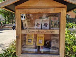 Boîte à livres dans un jardin public, près d’une bibliothèque (Nice, octobre 2025).